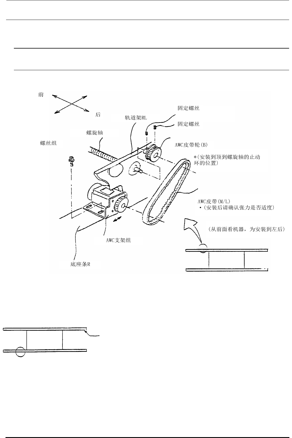 ※ E2154725000 AWC皮带轮(B)安装到轨道架RR上。