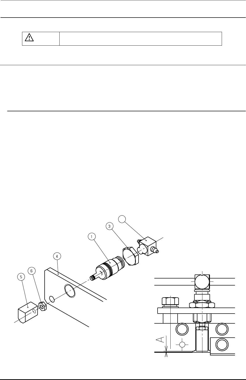 6) 拧松螺丝①,将螺丝②升上,则安装板被螺丝②的头部推起上升。螺丝①和②均旋转 5°,上升约