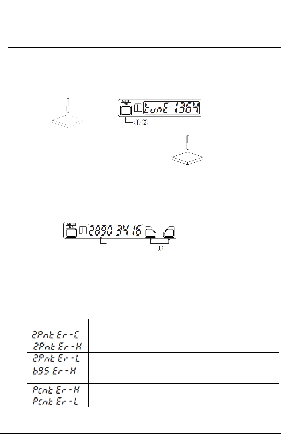 Rev 2.2 维修调整要领书 18 -2- 6 . 调谐( 2 点调谐) 将处于工件有或无这二个状态之中间的强度作为设定值。 < 设定方法(自动调 谐 ) > ① 请在没有工件的状态下按 “AUTO/OK” 按钮。 ② 请在有工件的状态下按 “AUTO/OK” 按钮。 调谐结束时显示 “2Pnt GOO d” 。 * ①② 的工件状态顺序即使相反也能设定同样的灵敏度。 ● 手动调谐 以手动设置设定值。在通常状态下按 + 或…