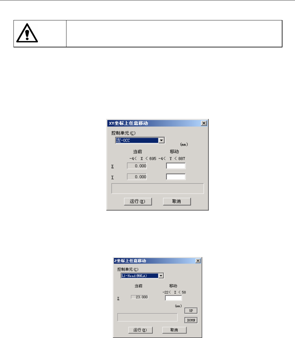 单击[运行]或[OK]后,为了归还吸嘴,轴会移动。单击前,请务必确认设