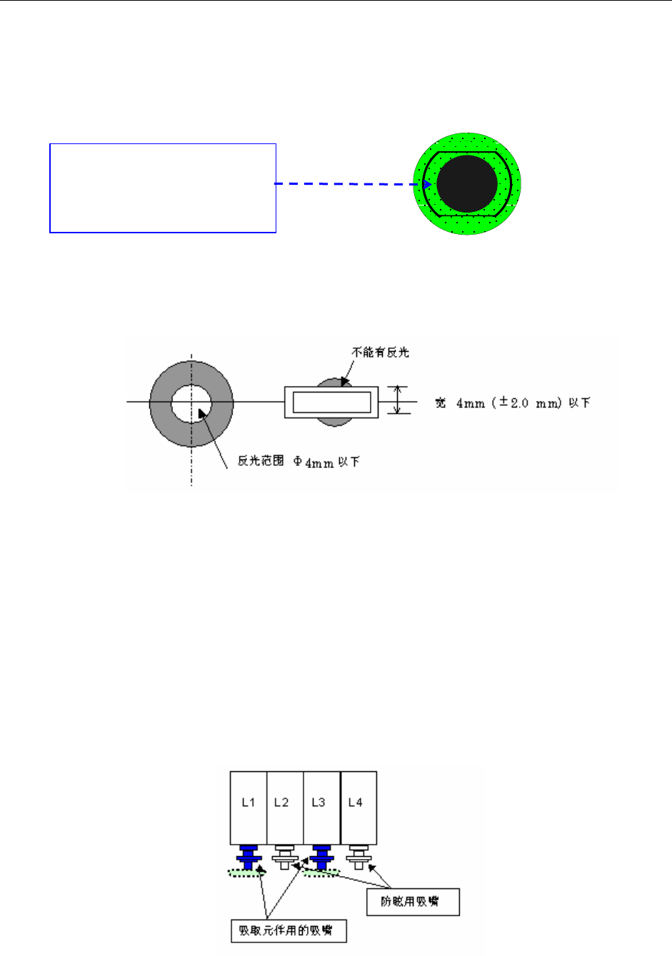 (2) 做为防眩用,在相邻的不使用的轴上,安装上 VCS 测不出的吸嘴(参见下图)