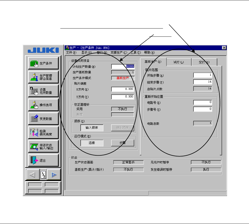 在“基板生产”、“试打”、“空打”各种生产模式中,设置各项生产条件。