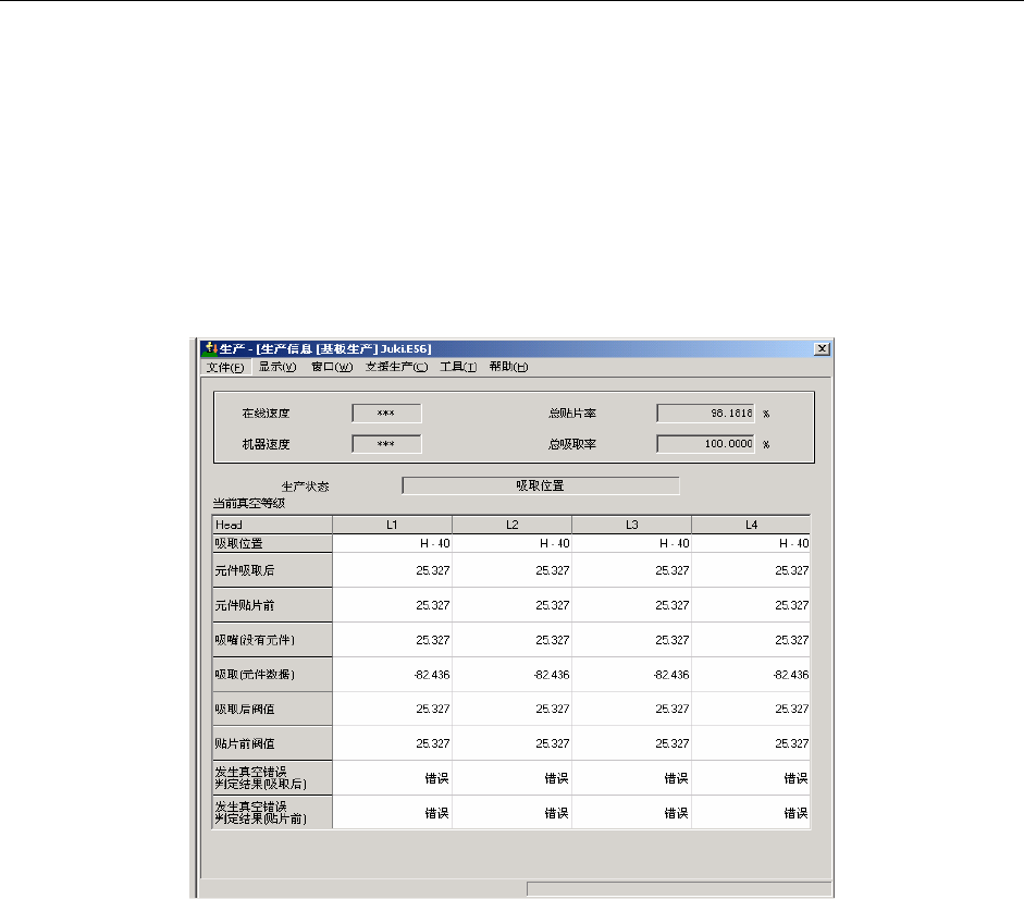 10 吸取 (元件数据) 显示贴片头吸取元件 (元件数据)当时的真空水平。