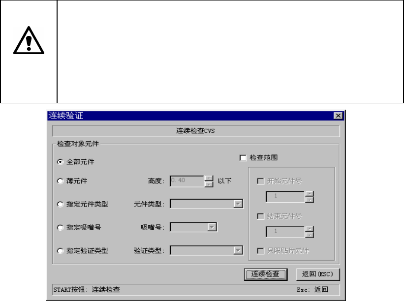 显示如下画面。请设置检查对象的元件的条件,单击“连续检查”。