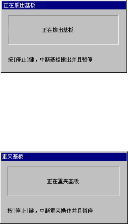 在搬出基板画面上按下<START>开关时,会显示正在搬出基板画面,并搬出基板。搬出动作完