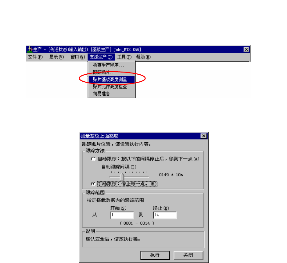 图 2-12-4-2 测量基板上面高度菜单