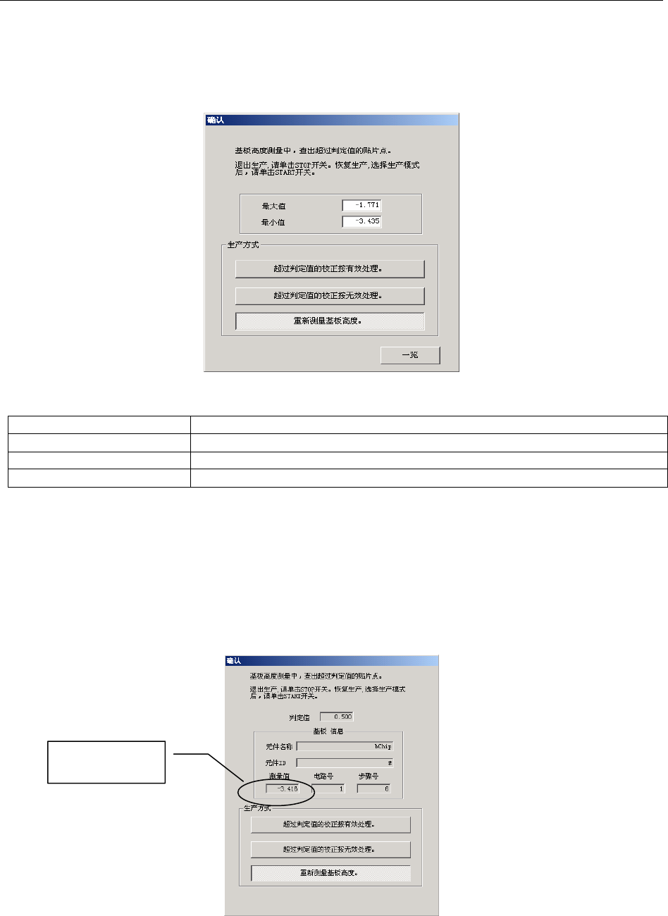 此时可以选择重新测量基板高度、超过判定值的校正值按有效处理、或按无效处理后继续进行生产。