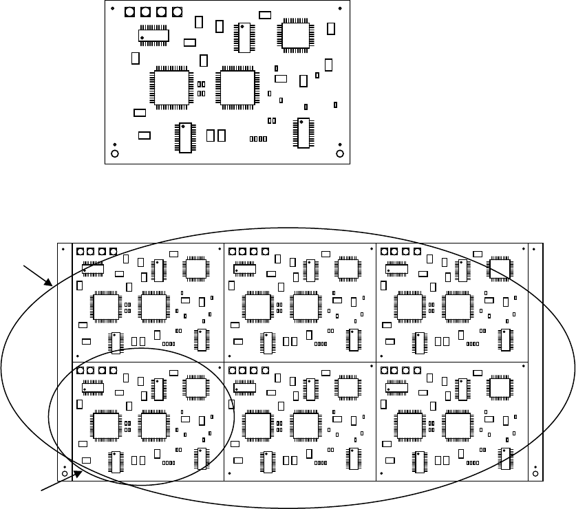 ◆ 矩阵电路板: 如图所示,是指在一块基板上,存在多个电路,所有电路的角度相同,