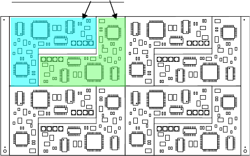 ◆ 矩阵电路板: 如图所示,是指在一块基板上,存在多个电路,所有电路的角度相同,