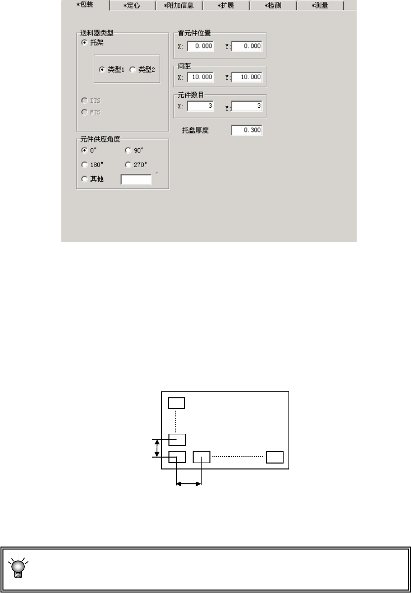 输入从托盘外形到首元件中心位置(X、Y)的距离。