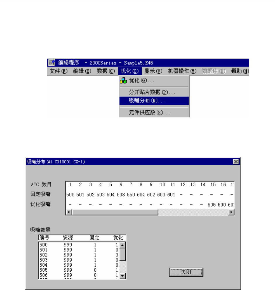 请从菜单中选择“优化”/“吸嘴分布”。