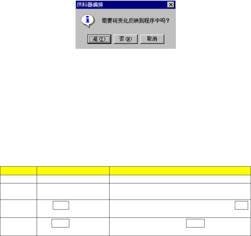 编排后,关闭供料器编排、站台选择画面,则显示是否将编排内容反映在程序数据中的确认