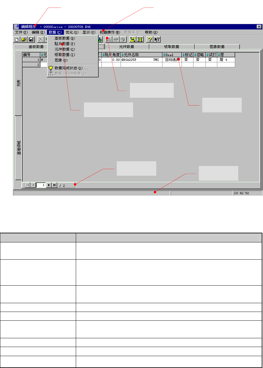 ⑦状态栏 显示菜单项的说明以及数据的输入范围等。
