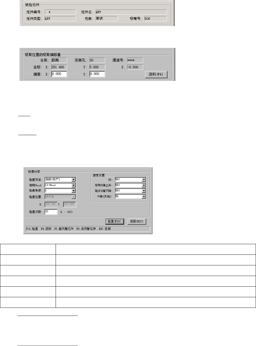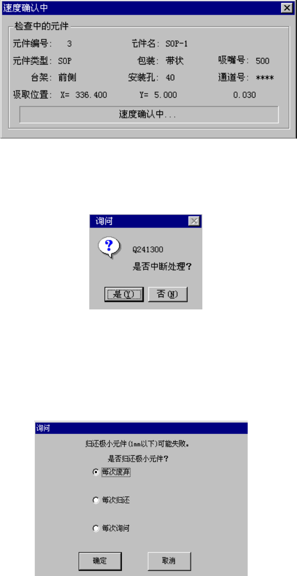 确认速度时出现下列对话框,显示正在确认速度的元件内容及吸取位置。逐项地实时显示