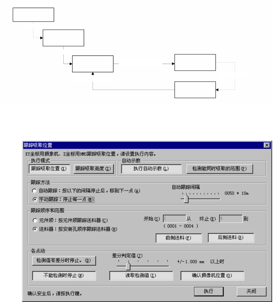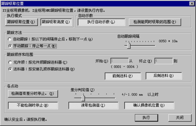 从菜单栏中选择“机器操作”/“确认”/“坐标类”/“跟踪吸取位置”,显示如下画面。