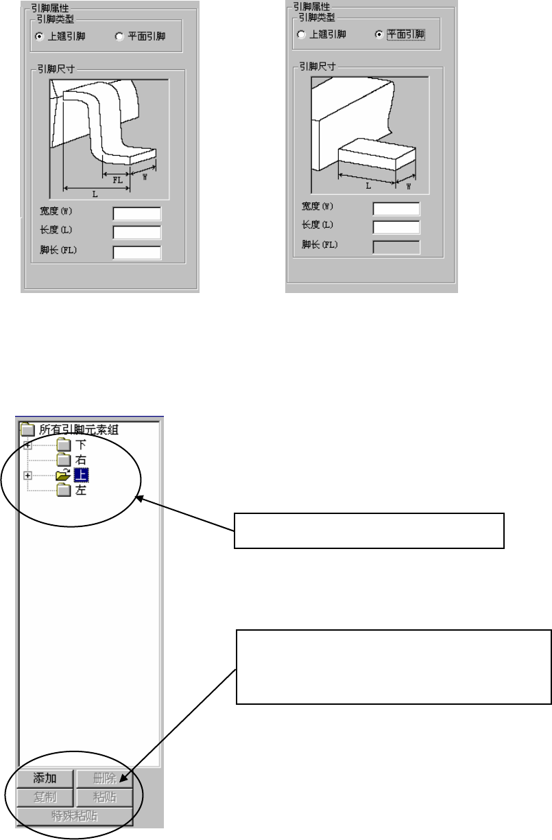 图 6-4-3-5 引脚特征(鸥翼形引脚) 图 6-4-3-6 引脚特征(平板引脚)