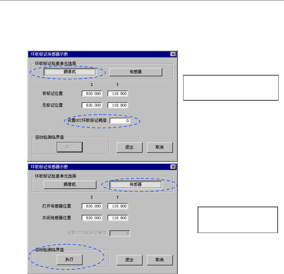 感器]选择坏板标记的识别方法,使用 OCC 时,要设置阈值。