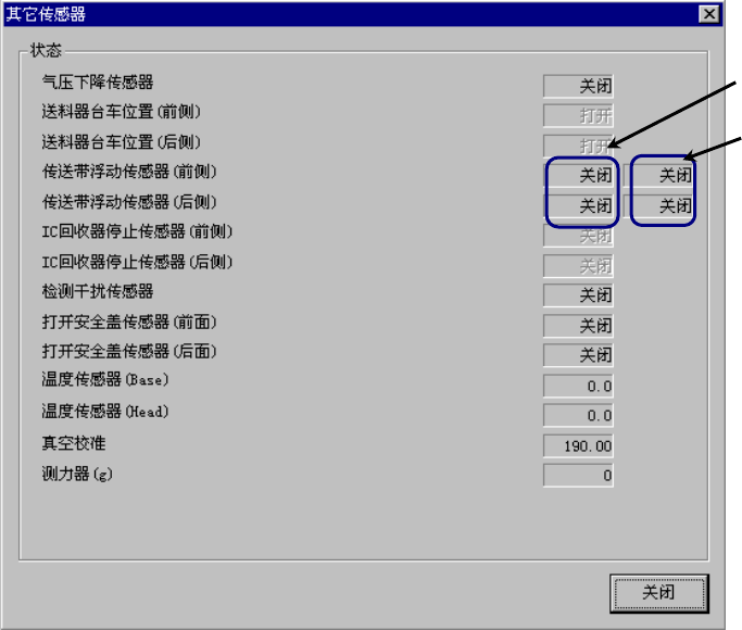 显示各传感器的状态。