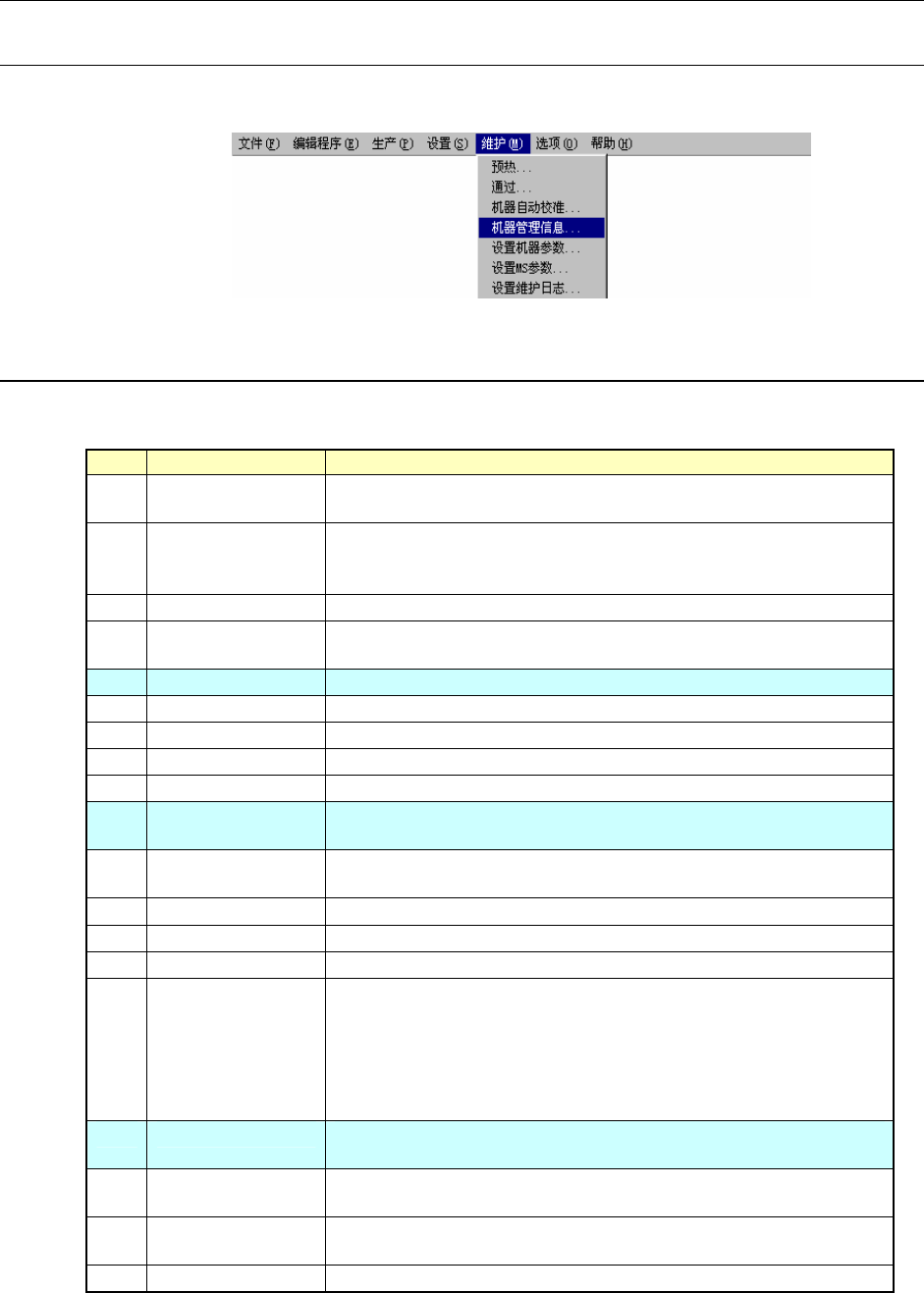 通过从主画面的菜单栏中选择“维护”/“机器管理信息”,可选择如下的运行信息。