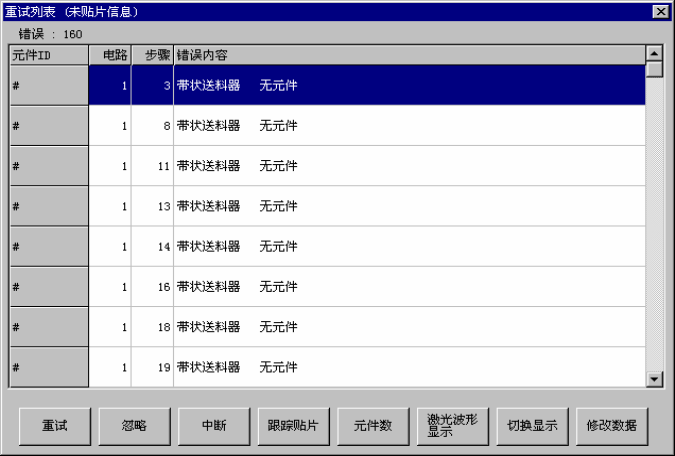 图 2-10-5-2-1 重试列表(未贴片信息)的显示