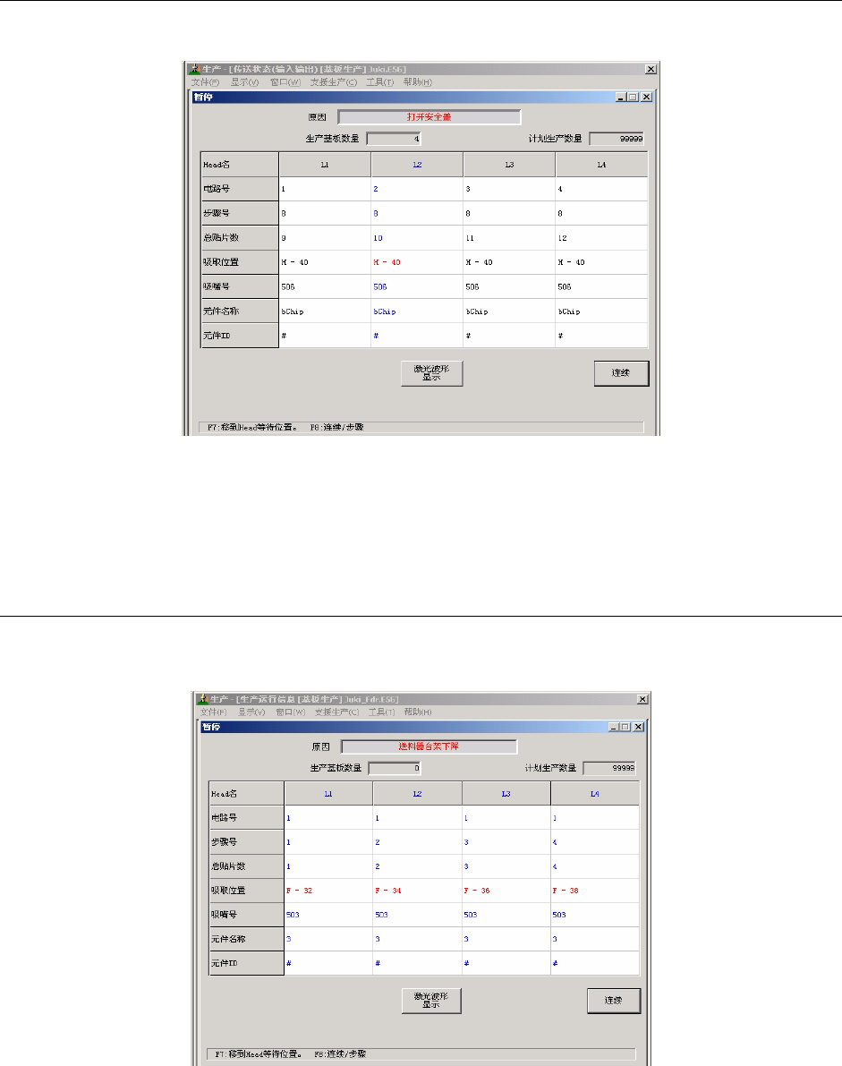 此外,如果在生产动作中(XY轴承移动中)检测到供料器悬浮,则显示如下信息,并进入暂停