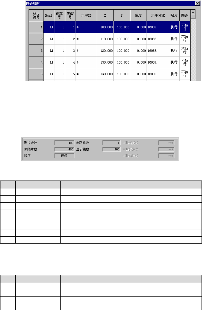 对于贴片点一览表中所选中行的跟踪项目,如果是“执行(跟