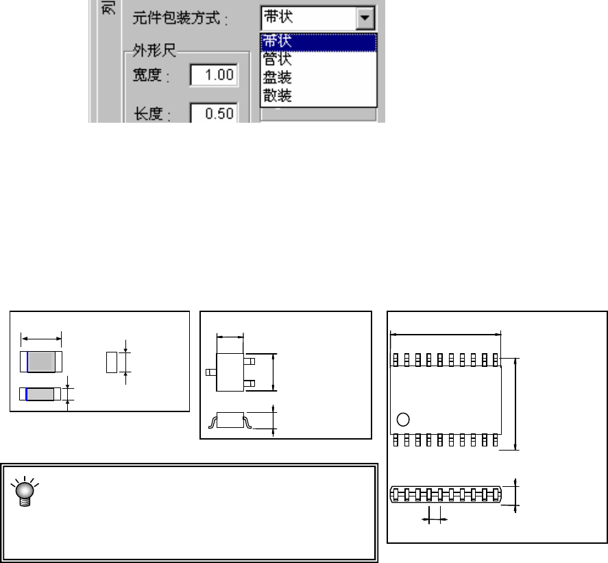 从显示的包装方式列表中选择元件供给装置的种类。需要进行变更时,请从下拉式列表