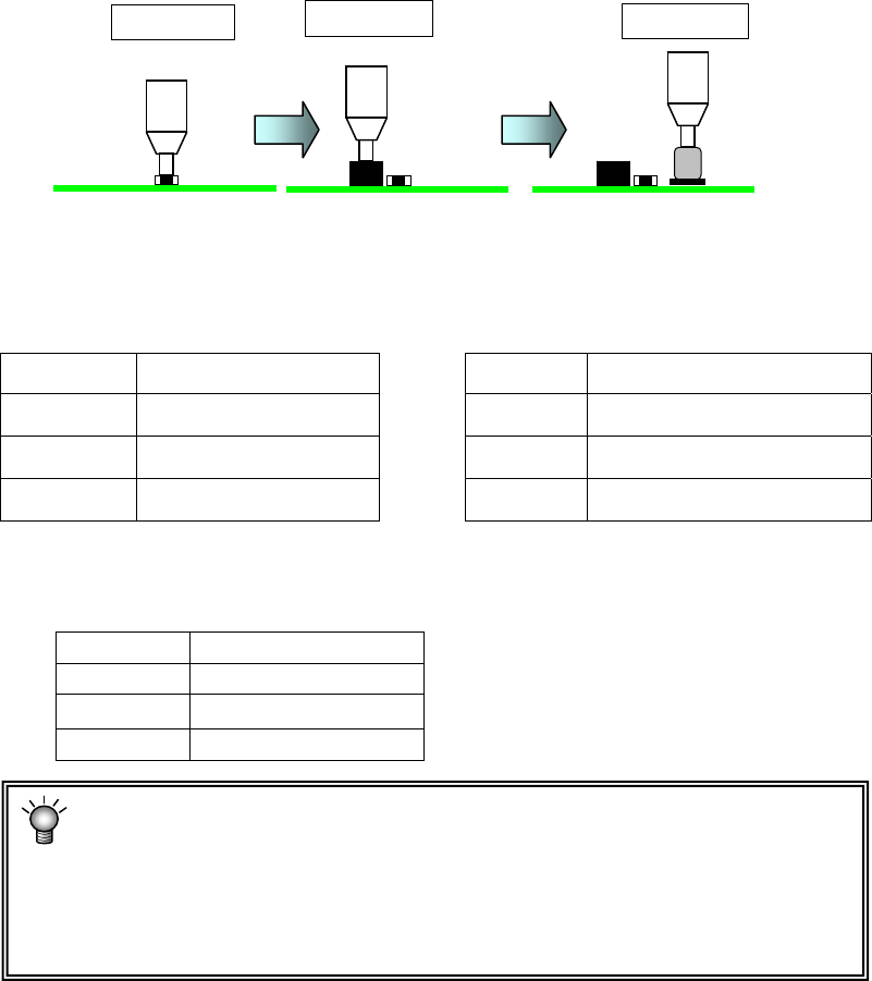 <贴片的优先顺序与元件种类、元件高度的关系>