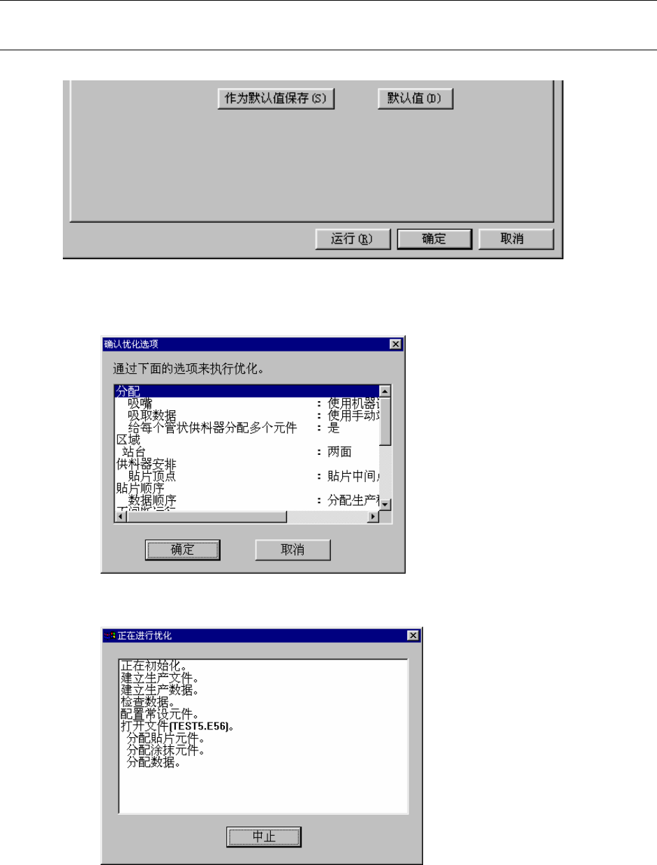 第1部 基本篇 第4章 生产程序制作 4-4-2 执行优化 4-4-2-1 执行优化 1) 在优化条件设置画面中,按下“执行”按钮,开始优化处理。 2) 显示“确认优化选项” 。 单击“确定”后,进行优化。 显示正在进行优化的画面。 4-122