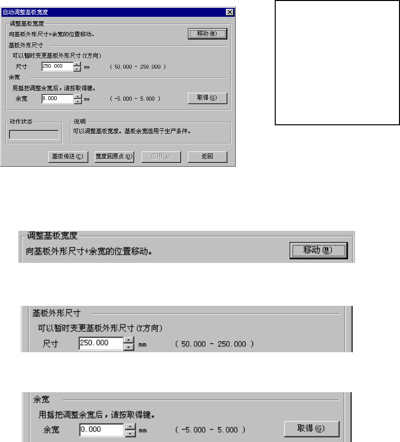 使用主机前面的手柄进行调整后,按下“取得”按钮,将当前的传送宽度与基板外形尺寸的