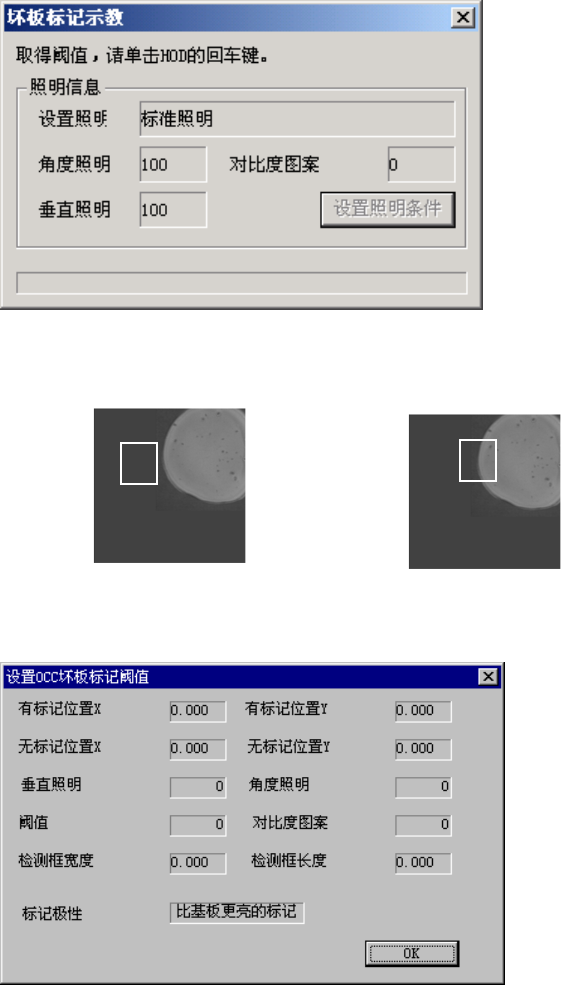 把光标对准设置 OCC 坏板标记阈值的编辑框,按下 HOD 的 CAMERA 键开始示教。