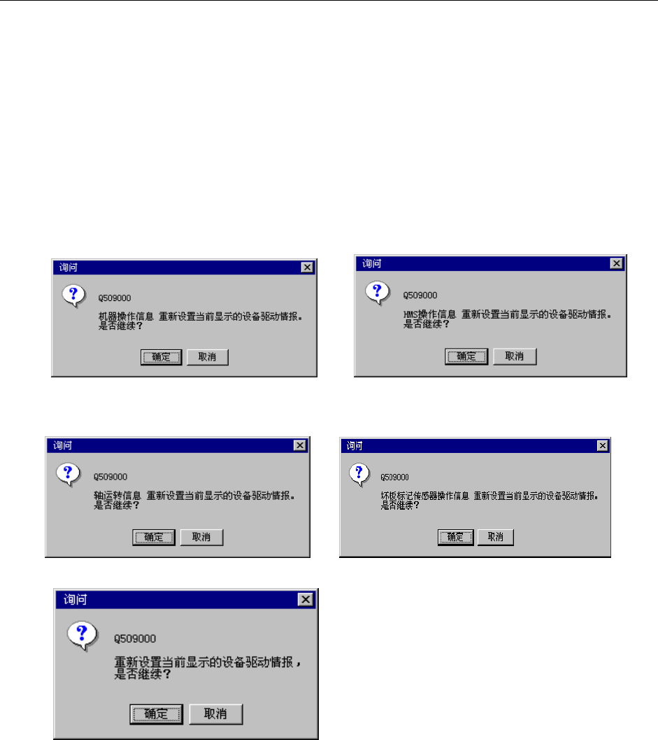 图 10-5-16-3 对轴运转信息重新设置的询问 图 10-5-16-4 对坏板辨认传感器作业信息重新设置的询问
