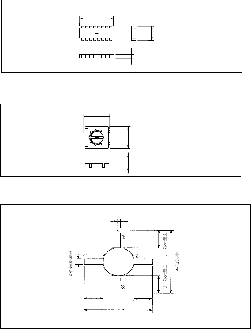 第 2 部 功能详细篇 第 13 章 程序补充 · 网络电阻 纵 · 微调电容器 纵 · GaAsFET(仰视图) 引脚宽度左右 引脚长度左右 引脚长度左右 排管 电源 开关 电源 外形尺寸 13-6