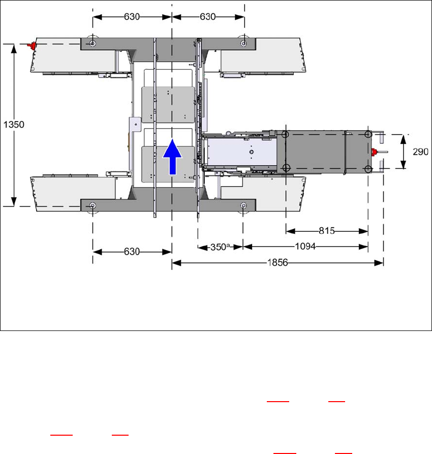 Fig. 4.3 - 7 Medidas de distância dos pés da máquina da estação de montagem e WPC5/WPC6 em milímetros