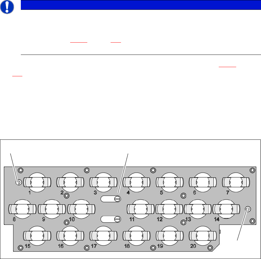 Fig. 6.1 - 8 Carregador de pipetas - numeração das garagens, marcas para determinar a posição e a posição angu-
