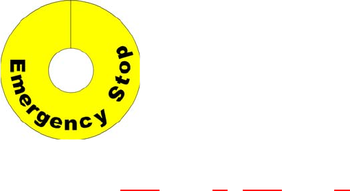 Placa de alerta na tecla PARADA DE EMERGÊNCIA