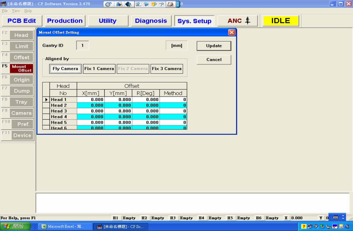 當生產時螢幕中的紅十字與零件位置沒偏但零件有打偏時,要調整吸嘴座標:Sys.