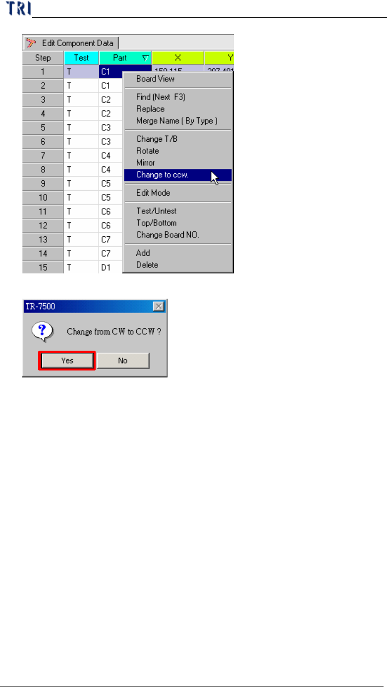 components can be changed except Test, Part, T/B or Board NO.