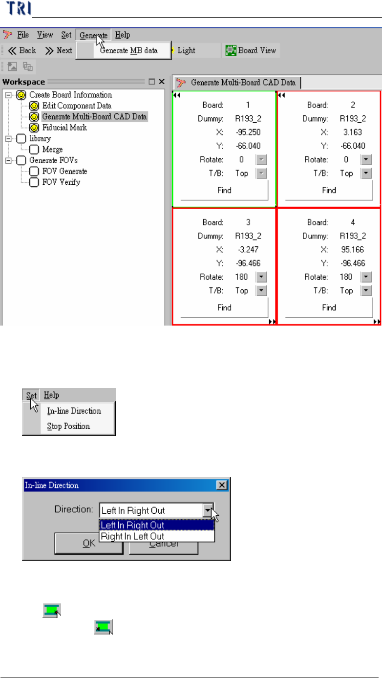 C h a p t e r 3 A O I A T P G F u n c t i o n i n s t r u c t i on T R 7500 U S E R M A N U AL 1 49 4 . G e t B oa rd Ro t a t e A ng l e , F i nd D u m m y Co m pon ent Pos iti on 4 . 1 . S e t 4.1.1. I n- l i n e D i r…