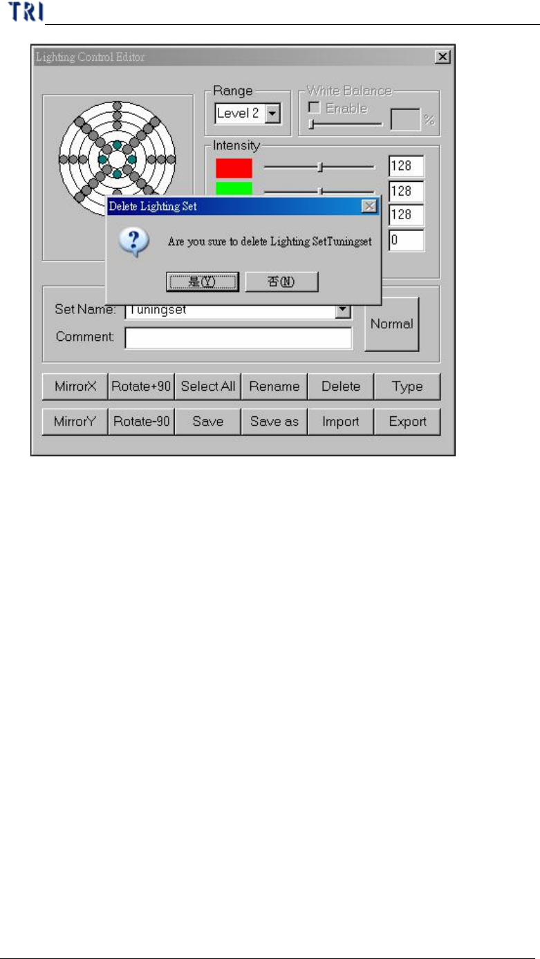 C h a p t e r 3 A O I A T P G F u n c t i o n i n s t r u c t i on T R 7500 U S E R M A N U AL 1 57 ( 7) M i rr o r X – M i r r o r t h e c u r r e n t li gh ti n g a cc o r d i ng t o X a x i s . ( 8) M i rr o r Y – M i…