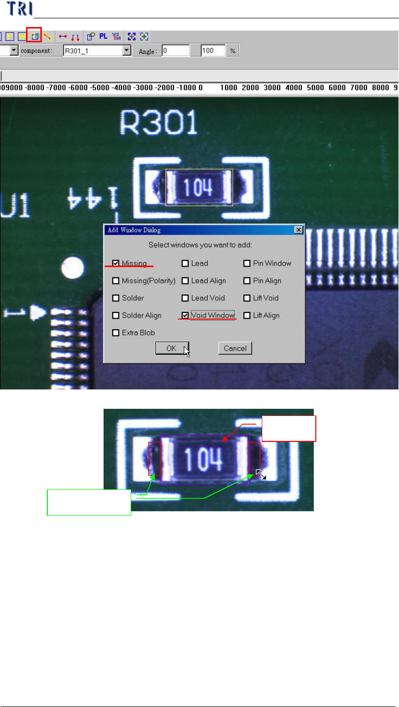 C h a p t e r 3 A O I A T P G F u n c t i o n i n s t r u c t i on T R 7500 U S E R M A N U AL 2 01 ( 4) A d j u s t t h e s i z e o f v o i d w i n d o w s t o c o n t a i n b l a c k a r ea . V o i d W i n d ow M i s s…