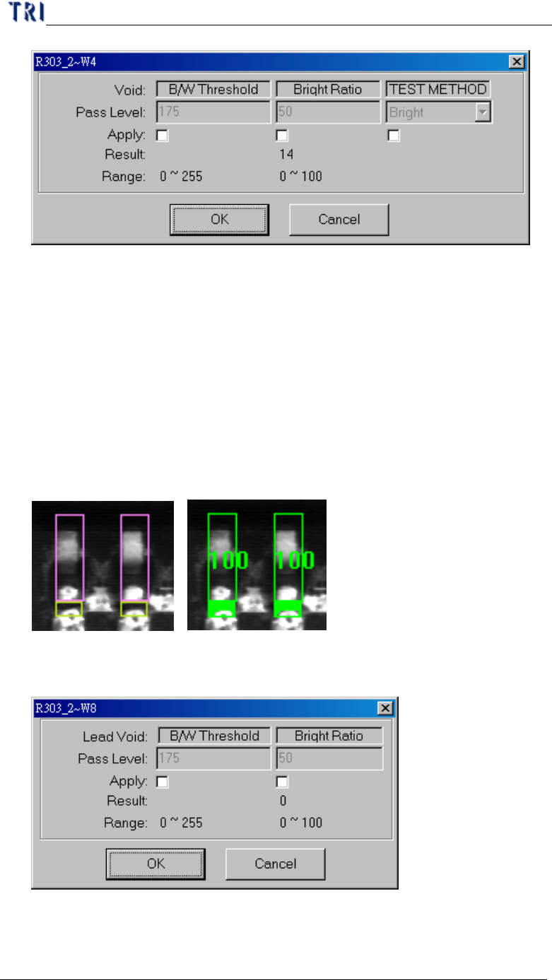 l To check no solder or open of IC lead. Algorithm is as same as void window.