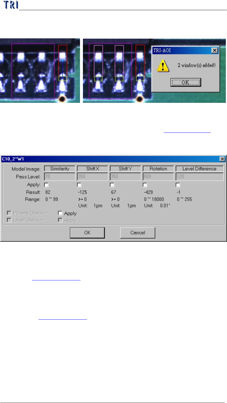 l Set the pass level for selected inspection window.