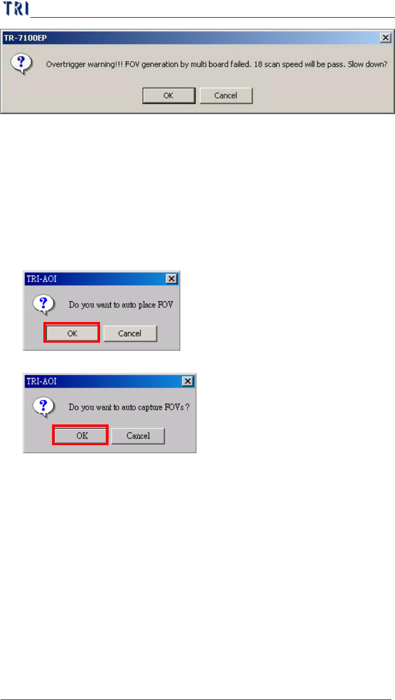 (2) Warning message for auto place inspection FOV.