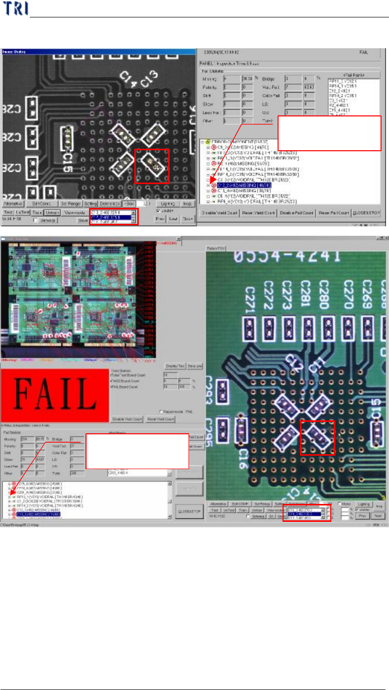 (4) When you click the failed component on image or in component list, the defect