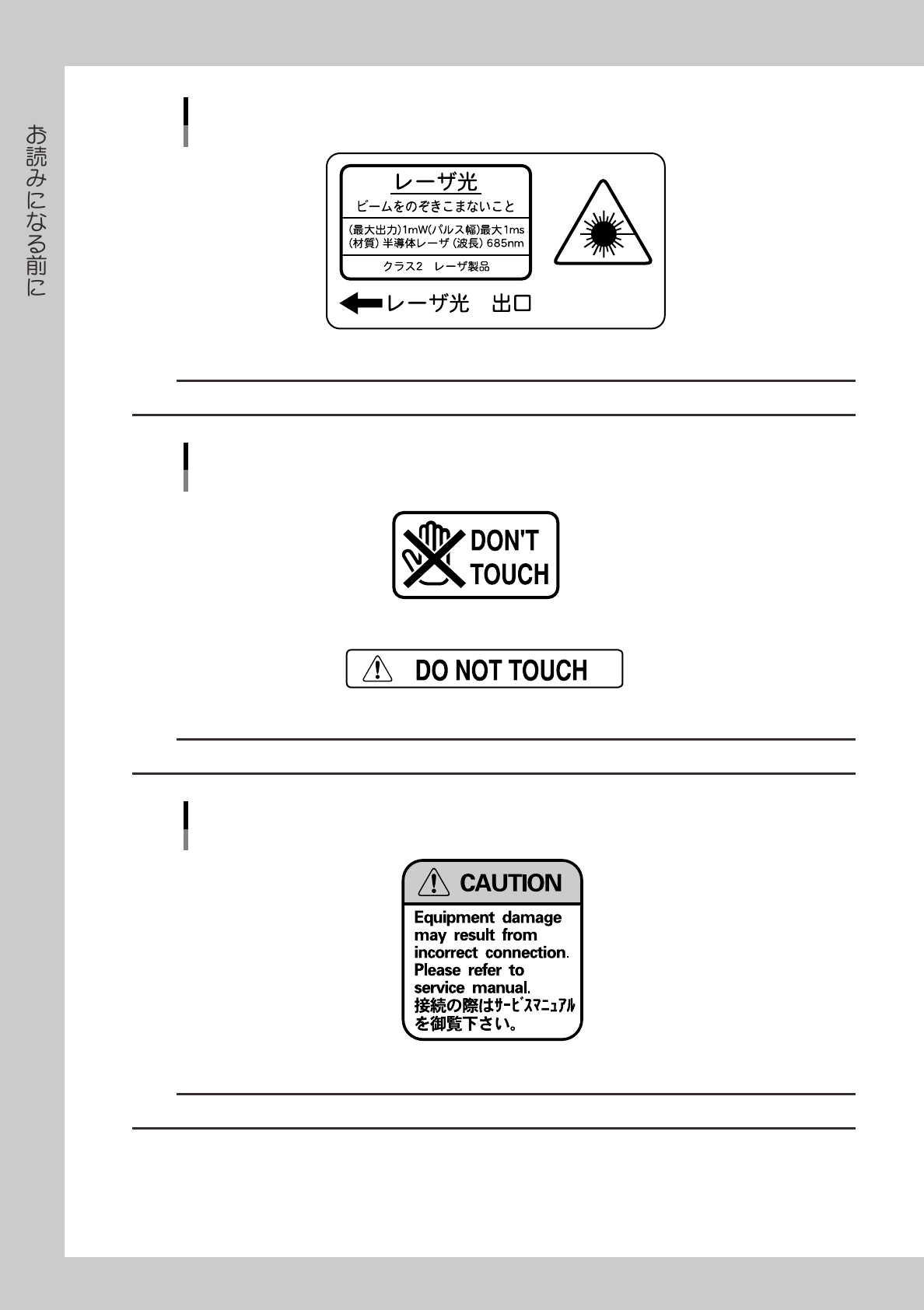 指定外の接続方法および誤った接続をすると、機械にダメージを与える原因となりますので注意してください。