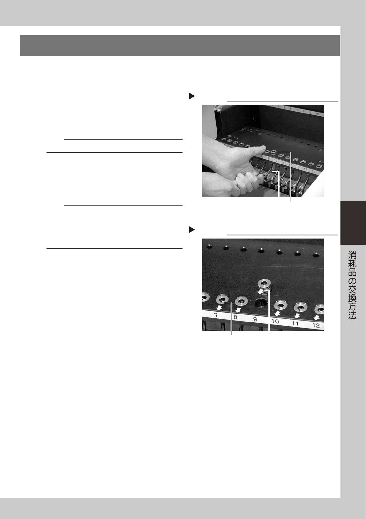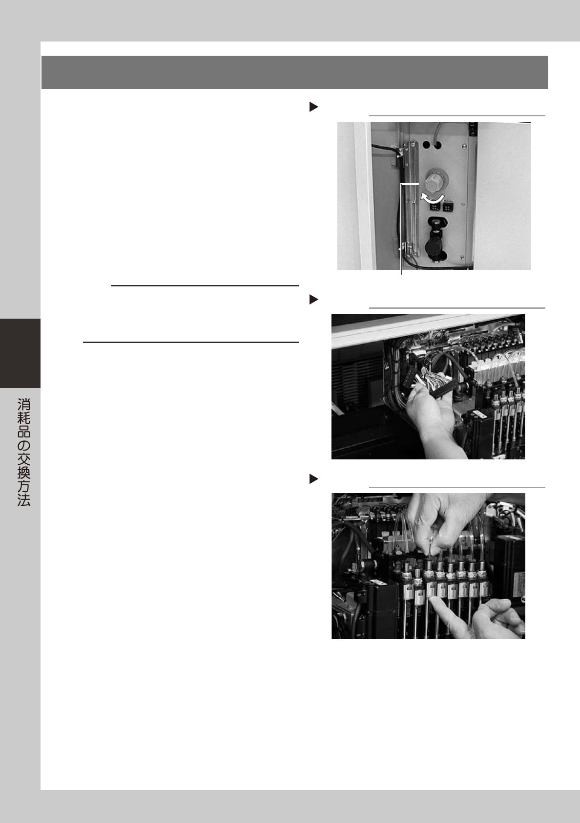 4-4 4 3 . エ ジ ェ ク タ ー バ ル ブ の 交 換 1 供 給 エ ア と マ シ ン の 電 源 を 切 り ま す 。 ソ フ ト ウ エ ア を 終 了 し て マ シ ン の 電 源 ス イ ッ チ を O F F に し 、 さ ら に マ シ ン 左 下 パ ネ ル 内 の 「 エ ア 供 給 / 排 出 」 ス イ ッ チ を 右 に 回 し て エ ア 供 給 を 止 め て く だ さ い 。 …