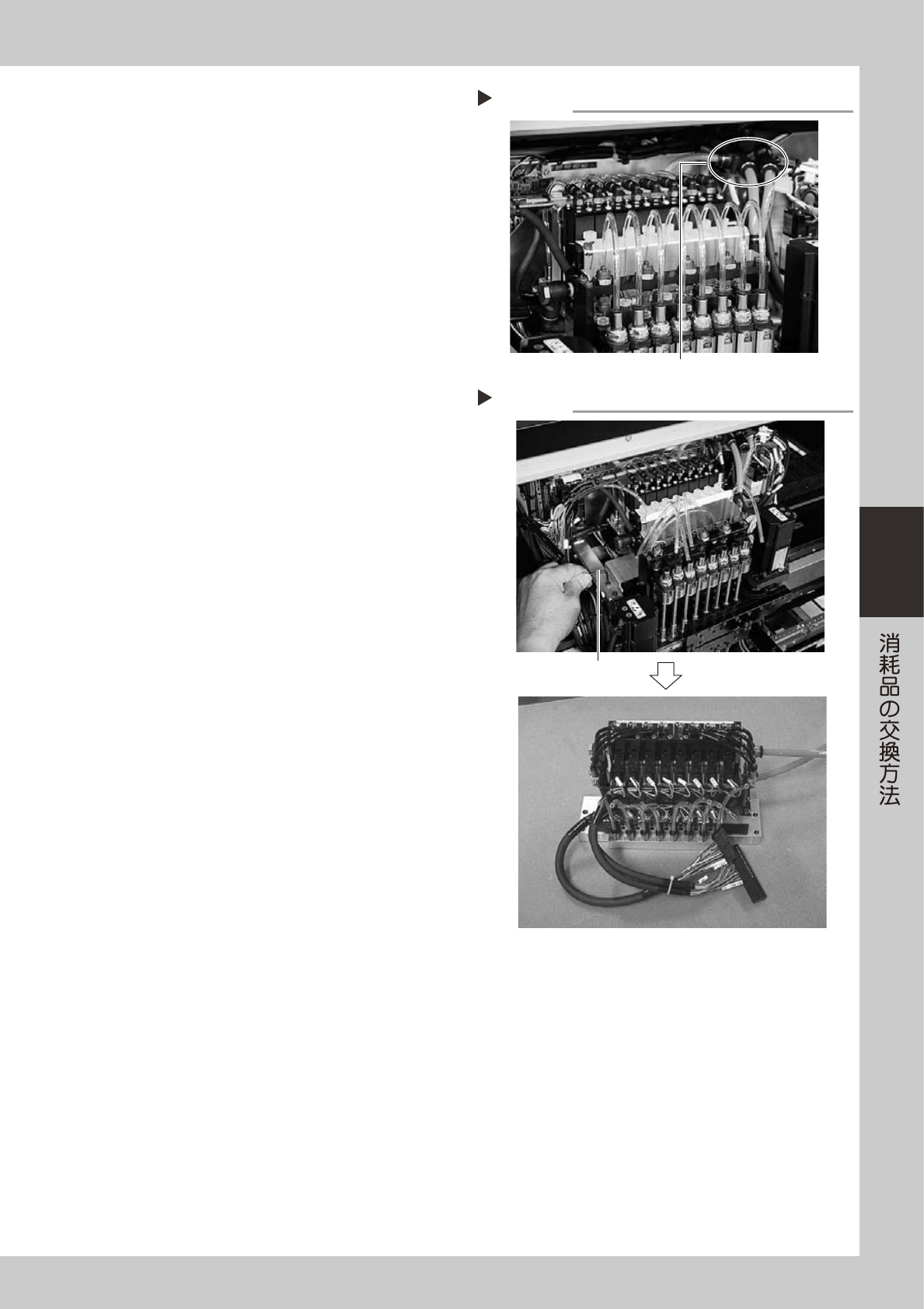 ヘッド上部の右側にあるエアホースを 3 箇所外し