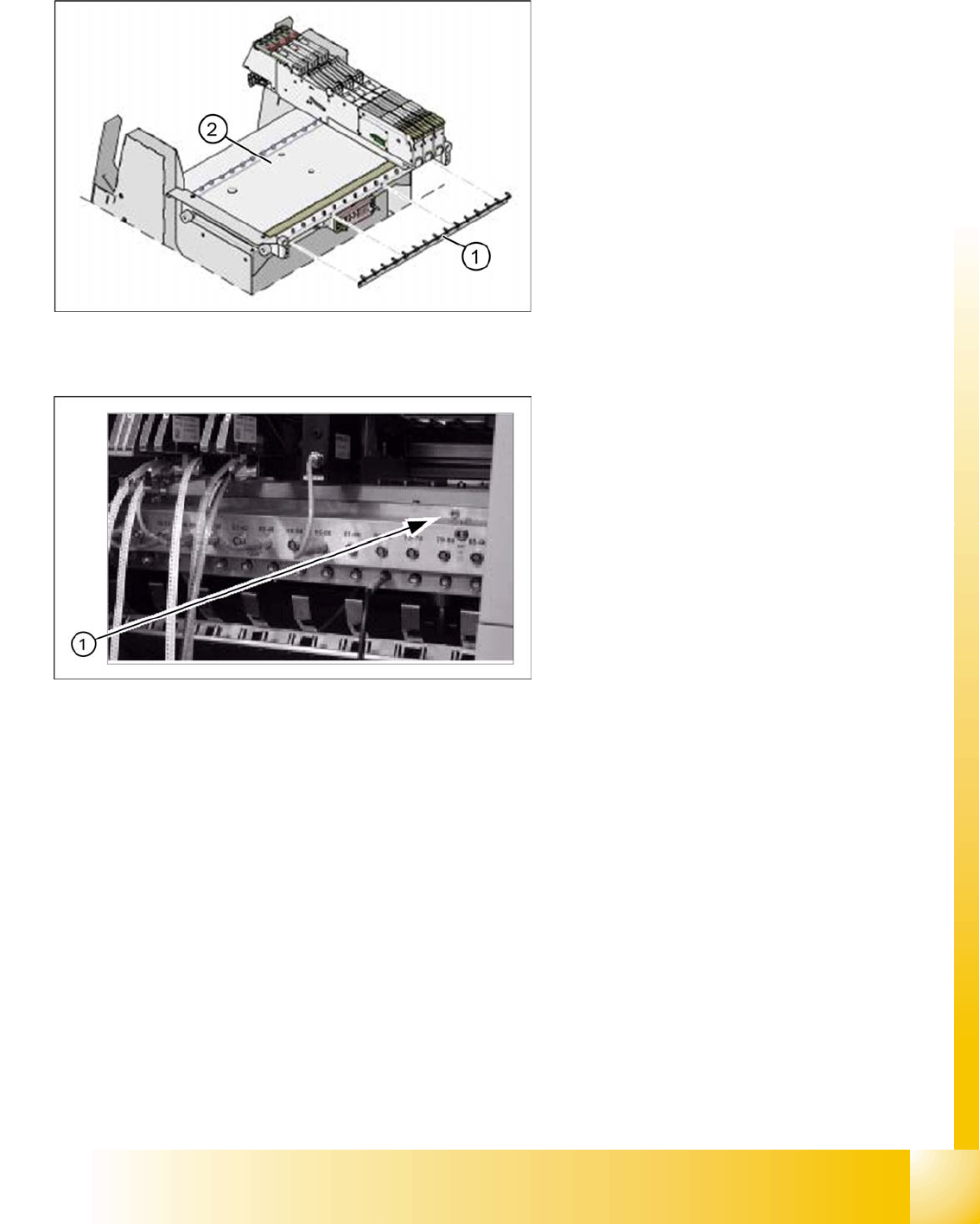 clippings fall down the waste tape chute, into the waste tape container of the CO trolley.