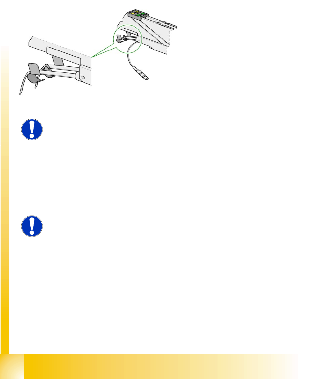X Check that the separating plates engage in the same positions on both guide rails. Otherwise the